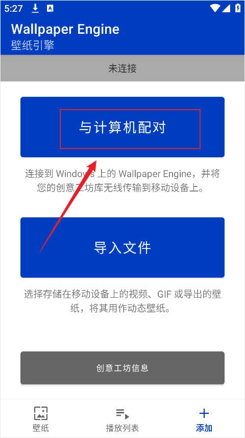 2、连接到Windows上的Wallpaper Engine,以将桌面库传输到手机上。