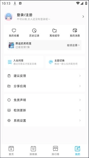 3、在实际使用软件前,我们要在个人界面完成注册与登录,如此一来,日后就能轻松找到看过的动漫以及各类收藏资源。