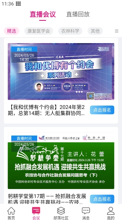 2、会议类型丰富多样,其中不乏各类科技会议。用户能够从中挑选出自己感兴趣的科技会议进行报名参与,进而与其他科技工作者展开交流讨论。
