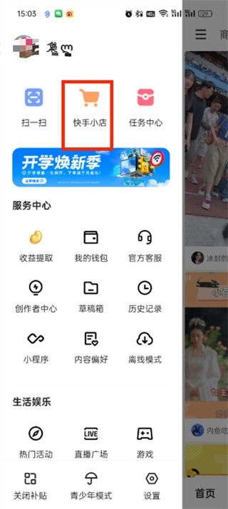 2、然后在该页面中我们需要点击的是【快手小店】。