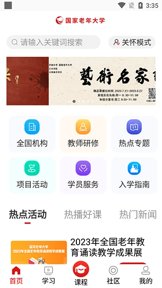 授课方式采用线上线下相融合的模式,线上课程方面,学员需登录国家老年大学云课堂展开学习。
