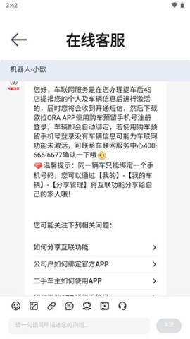 提及欧拉ORA手机应用,它也为用户带来独特且精彩的功能,赋予车主前所未有的便捷与乐趣。全新版本顺势推出,具备众多令人惊喜的功能与服务,使您的汽车生活愈发智能有趣。