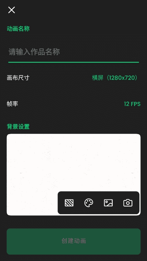 2. 在设定好画布尺寸与动画帧数之后,点击“创建”按钮,即可开启动画框架的构建。
