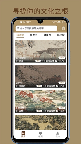 中华珍宝馆是一款汇聚各类中国书画艺术藏品的软件。它收纳了自“晋代”直至“当代”的海量顶级书画资料,其图片清晰无疵,色彩精准,绢丝纹理清晰可辨,观赏时仿佛实物就在眼前。该软件不仅具备各类艺术品的资料与图片,还设有图片点评功能,方便用户互动交流。此外,软件提供了专属图库,用户可依据自身需求,在精选馆、新发图、分类馆、历代馆等不同专区进行浏览。选中心仪作品,就能查看相关介绍,涵盖作者信息、作品样式、收藏情况、数据以及标签等内容。