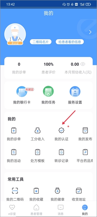3、进入软件主界面,切换至“我的”功能界面,选择“我的认证”。