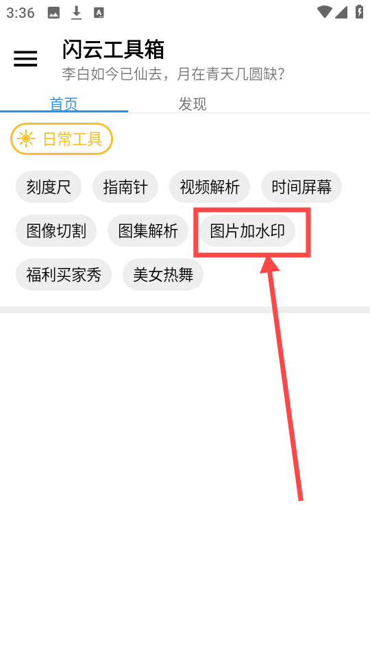 1、打开软件主页,定位到“图片加水印”功能入口。