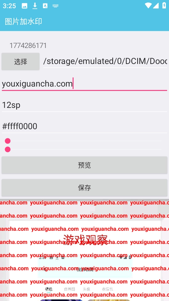 2. 挑选出需要处理的图片文件,设置好水印文字或者图案,接着点击预览按钮。