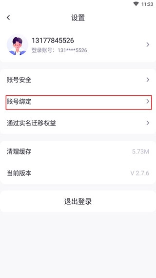 3、点击【账号绑定】。