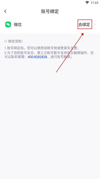 4、进入后点击【去绑定】,即可跳转微信绑定。