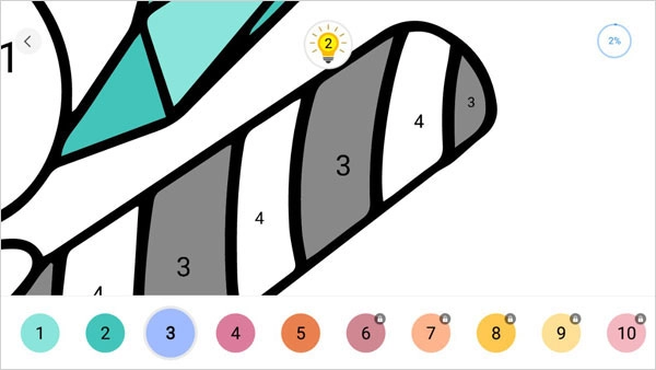 1. 发挥你敏锐的观察力,在图中找出与下方颜色相匹配的数字,并逐个进行上色。