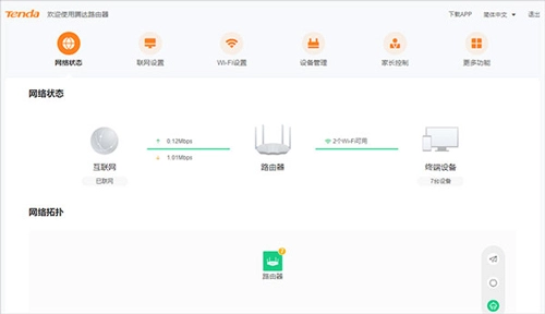 宽带网络处于正常状态。若手机或电脑已连接到路由器,可登录路由器管理界面tendaWIFI.com,在此界面中,仔细检查路由器配置的上网方式是否准确无误,同时查看路由器的网络连接状态。
