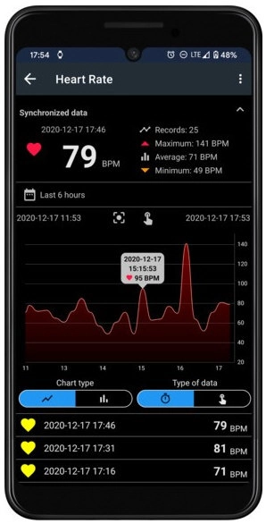 5、心率检测,连续检测心率,快速心跳立即提示。