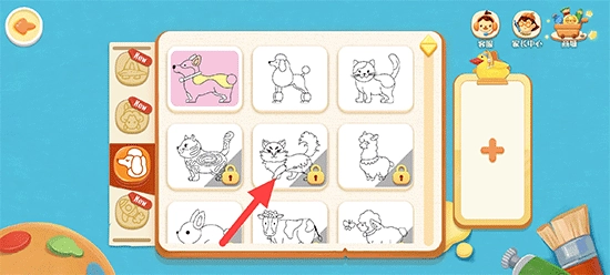 绘画主题每月都会更新,在每个主题中,角色的绘画难度呈阶梯式上升。同时,还会不定期为孩子们提供铅笔、水彩、油画、蜡笔、墨水笔、马克笔、织物等多达12种丰富多元的绘画工具,帮助孩子们自由地进行创作,释放无限的想象力。