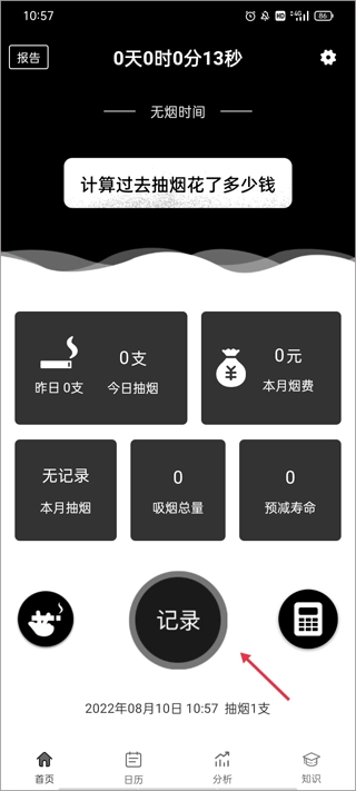 3、这时候就会发现已经添加了一个抽烟记录了。