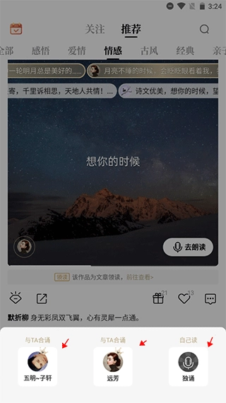 2、可选择【与TA合诵】或者【独诵】,我们选择读诵。