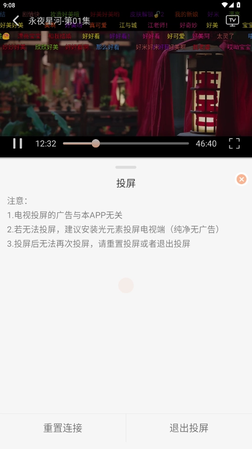 播放窗口右上角有个TV图标,点击该图标即可搜索投屏设备。