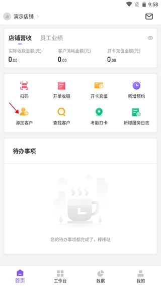 3、添加成功后可以跳转到工作台功能选项卡那儿。