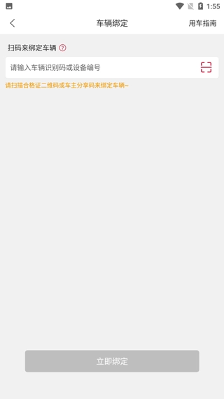 2. 完成登录操作后,输入设备码,接着填写车辆品牌、车架号以及电池信息,随后绑定车辆。
