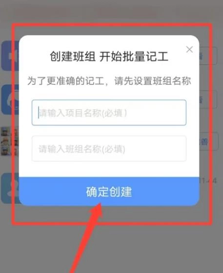 5.输入项目名称,输入班组名称。再点击确定创建