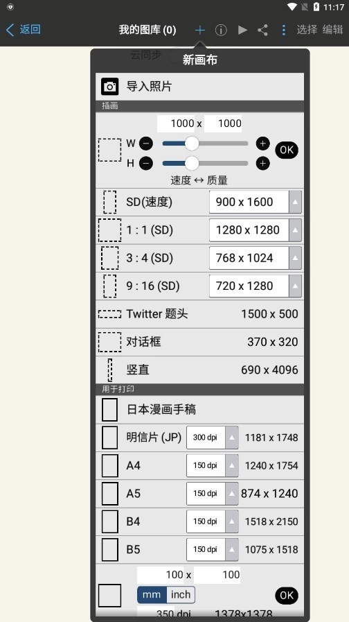 1. 开启软件,轻点“我的图库”,选中“新建画布”,进而进入绘画界面。