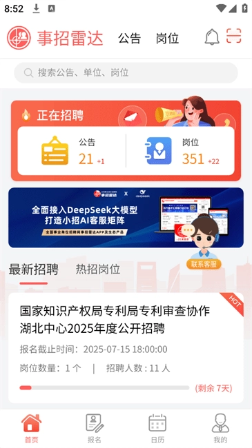 日程提醒:重要时间节点会自动提醒,无论是报名阶段,还是笔试、面试环节,都能让您对每一步进展了然于心。