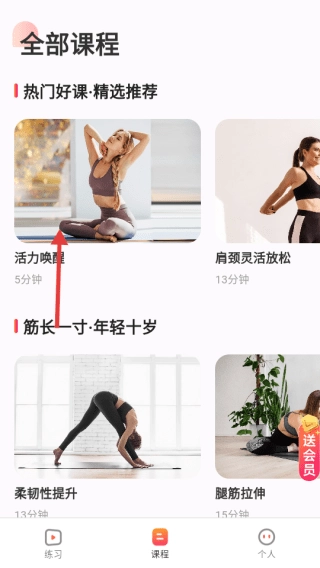 具备各类运动拉伸课程资源,可按类型查找课程。