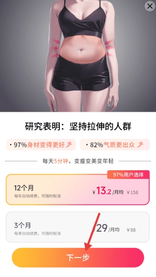 8、倘若出现课程购买弹窗,选择套餐后点击【下一步】,以完成购买流程。