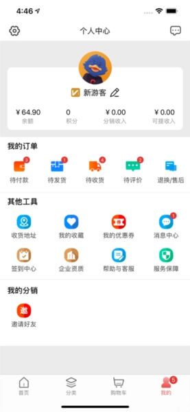 3、平台支持余额支付,用户能够随时向余额充值,随后使用余额开展购物活动。