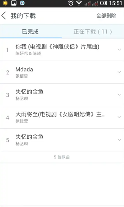 来到我的页面,就能看到全部歌曲。并且在该页面,还能对歌曲进行删除、管理操作。