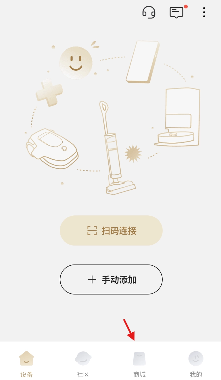 3、设备绑定连接:进入 设备管理页面,按指引完成智能清洁设备绑定。