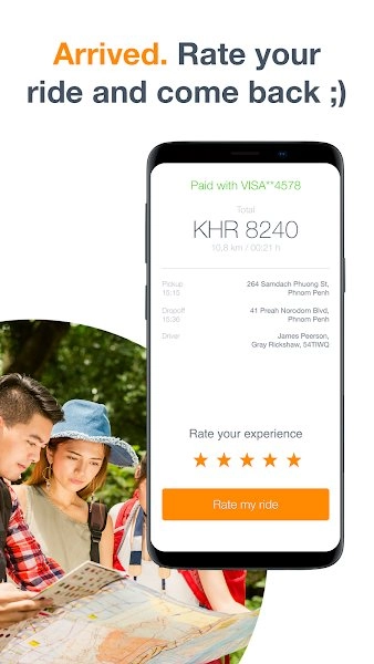 4. 到达目的地后,支付费用并评价司机。