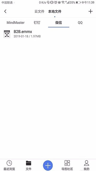 3、别人发给我的微信、QQ、钉钉接收完思维导图的源文件后,可直接打开MindMaster ,在“本地文件”里面进行查看、保存、编辑。