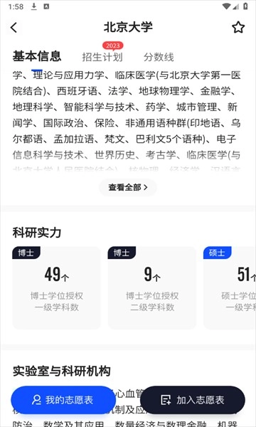 3、点击进入,即可查看详细介绍,涵盖基本信息、分数线以及历届招生计划。