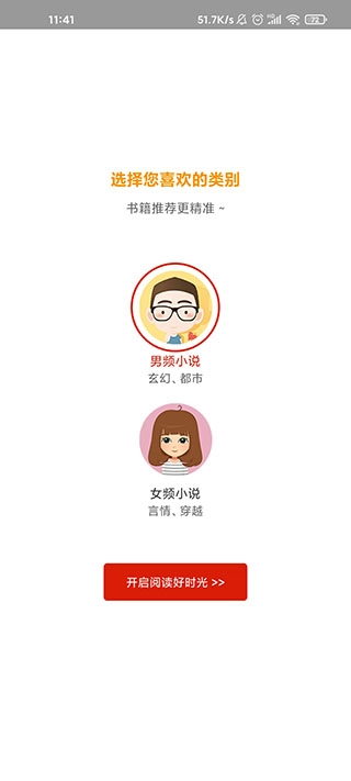 1、安装本站提供的追书神器免费版,然后需要选择自己喜欢的类型;
