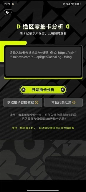 4、进入“抽卡分析”选项,输入抽卡分析地址,点击“开始抽卡分析”,就能查询绝区零的抽卡分析结果。