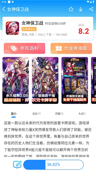 进入游戏页面可查看游戏介绍、开服、礼包。