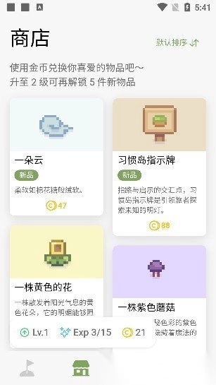 还能通过完成习惯获取奖励金币,然后到商店兑换精美的小岛装饰物品
