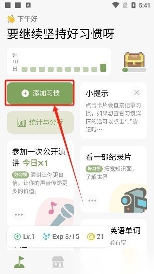 打开习惯岛,点击”添加习惯“功能