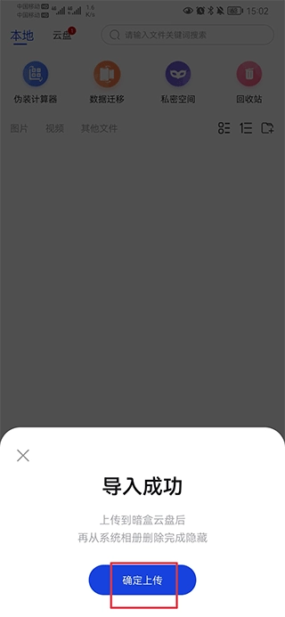 选择照片后,点击确定上传