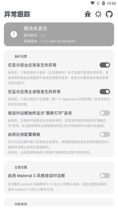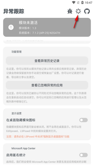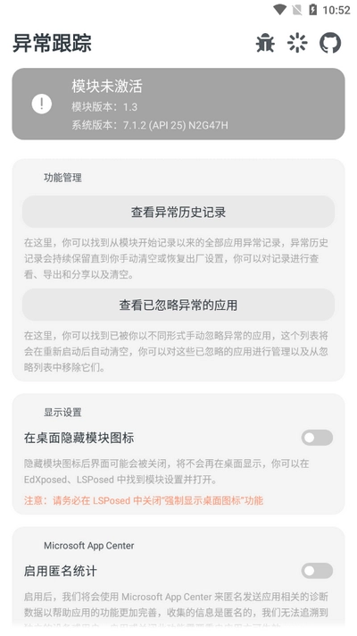 在屏幕上进行向下滑动操作,能够浏览到完整的异常过往记录,其中涵盖了异常出现的具体时刻、所属类别以及影响程度等细节,同时还能对那些已被设置为忽略状态的异常应用进行管控。