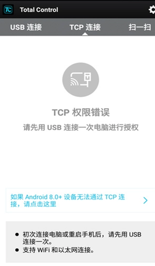 在手机上完成APK文件的安装操作后,通过USB数据线把手机和电脑连接起来,以此触发底层程序的首次运行。待手机确认正常启动后,移除USB连接线,接着开启手机的Wi-Fi功能,此时手机端的TC程序界面会自动显示出该设备对应的IP地址信息。