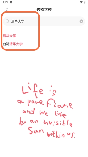 例如,输入“清华大学”后,系统会显示相关的学校信息,大陆和台湾的清华大学都会出现在结果中,这表明天猫校园面向海峡两岸的学生提供服务。