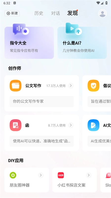 在内容发现区域,我们为用户整合了多元创作辅助工具,涵盖公文拟写、智能文案生成等实用功能。