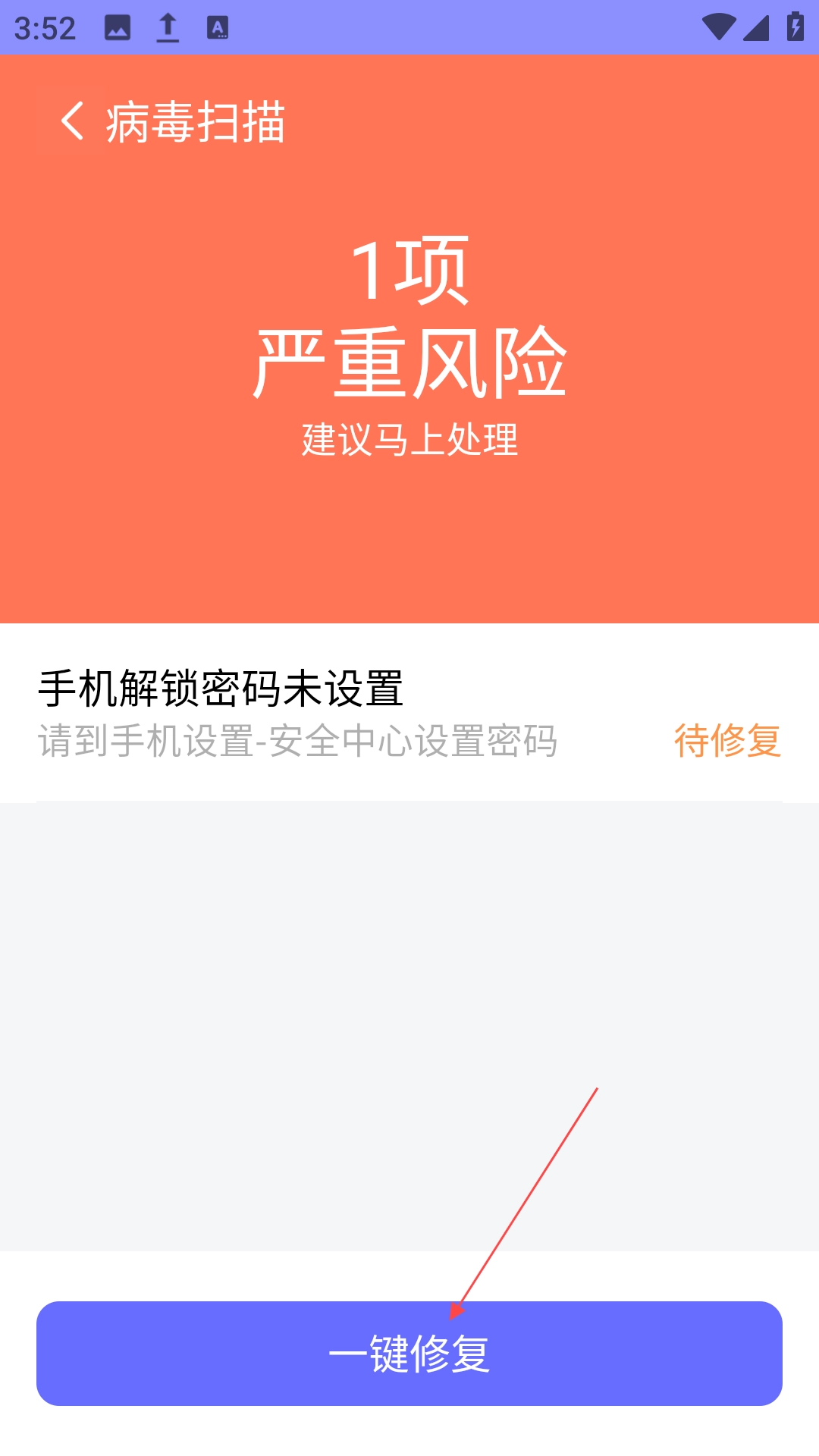 找到带有“病毒查杀”标识的功能入口并点击,启动系统的全面检测流程;一旦检测出潜在的安全隐患,就点击界面上的“一键修复”选项,系统会自动完成后续的安全维护操作,保障设备的正常运行。