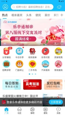 乐亭通平台整合了本地各类资讯与实用服务,从社区动态、民生指南到商家促销、房产租赁等,为用户提供了一站式的信息获取渠道,满足不同场景下的信息需求。