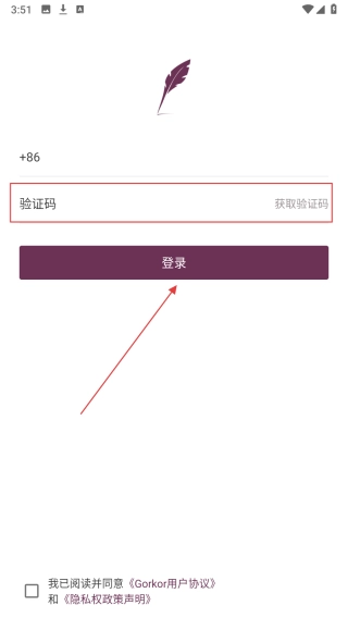 填验证码,勾选协议后点【登录】完成账号登录。