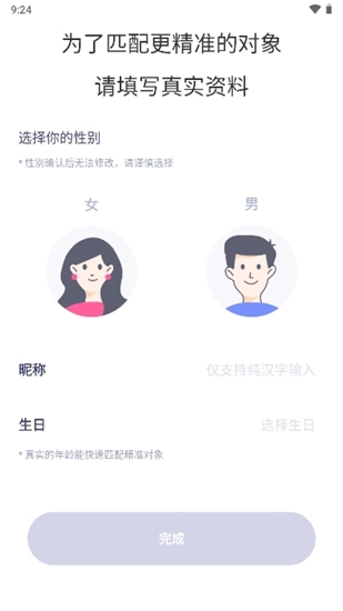 2、进去之后就会让你填入自己信息并且设置昵称。