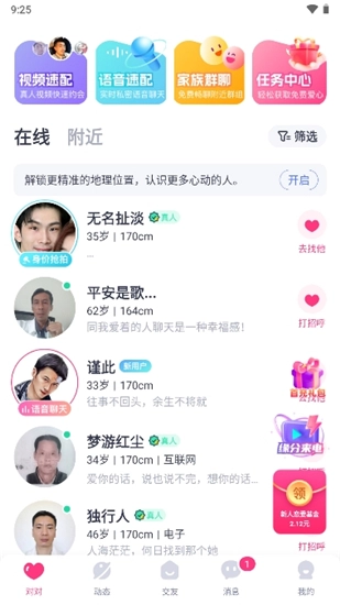 软件了多种交友平台,用户既能在此聊天交友,又能在闲暇时解闷,还能帮你快速找到志同道合的对象或好友。对这款对对新版本软件感兴趣的朋友们还在犹豫什么?赶紧来本站体验吧!