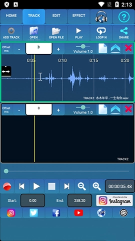 用户只需导入所需的音乐文件,再借助录音功能录制自己的声音,即可将其与其他音轨混合,从而创造出丰富的音频效果。