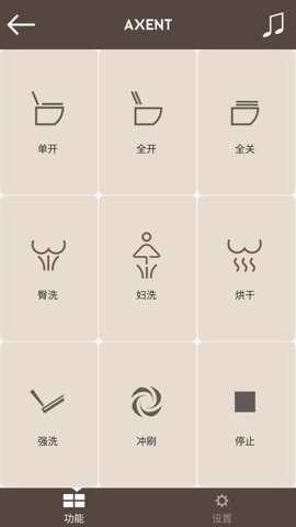 恩仕智能马桶的主页面布局简约得体,操作体验十分便捷。